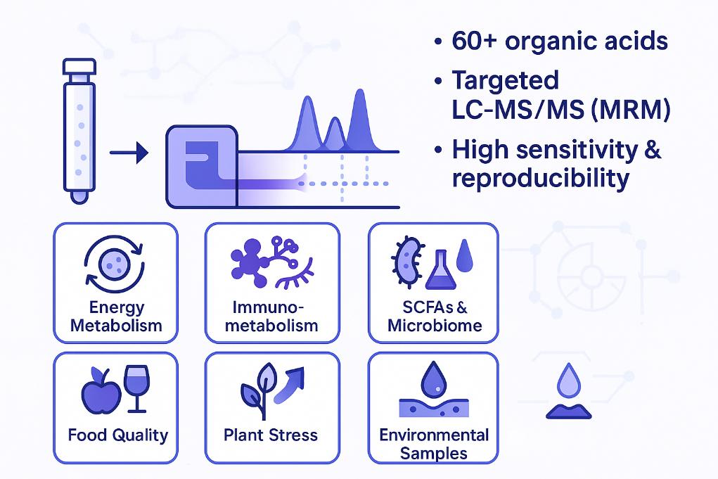 - Advanced LC–MS/MS platform: High-sensitivity QTRAP®-based workflows with optimized MRM methods for organic acids.